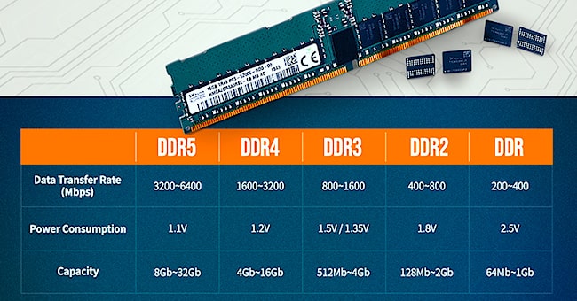 Al llegar a esa velocidad de transferencia casi duplica a su antecesora, la DDR4, exactamente es 1,8 veces más rápido que la DDR4 que llega hasta 3.200 Mbps. Otra de las características que también llama la atención es la reducción del voltaje que de 1,2V ha bajado a 1,1 V, también la compañía ha sacado a relucir que la capacidad que tendrá estas memorias son de 8gb y 32 gb, algo bastante positivo para el mundo de la tecnología.