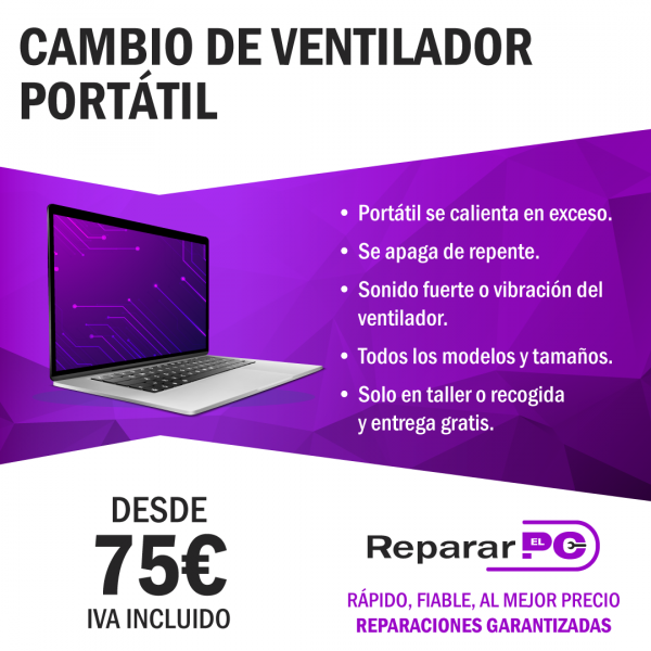 El cambio del ventilador en ordenadores portátiles se realiza cuando existen los siguientes problemas: